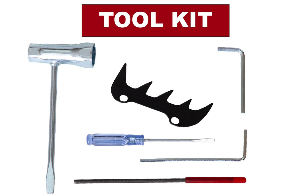 - Kit de întreținere: Șurubelniță, Imbusuri, Cheie strângere lamă